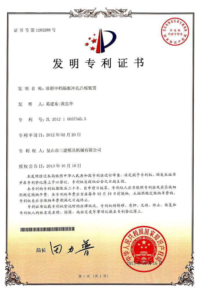 昆山市三建模具機械有限公司 創建于1996年,是一家研發生產電冰箱模具(電冰箱門、箱真空成型吸塑模、沖孔切邊模、